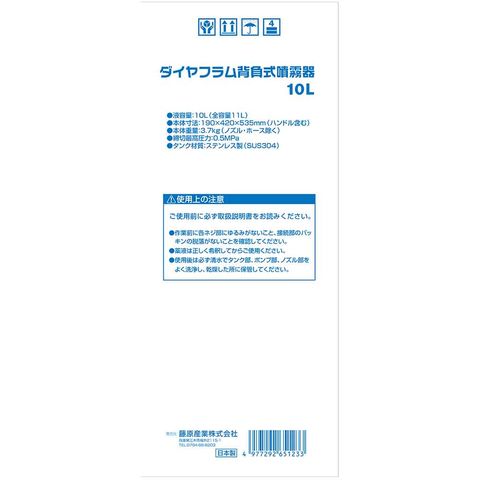 商品説明大容量、広い面積や長時間使用が可能な背負式噴霧器です。