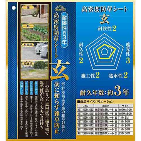 高密度織布タイプで布自体の強度を向上、農地等の使用にも最適です。