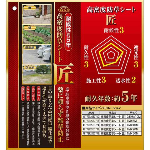 高密度防草シート 匠 1MX20M メーカー直送 ▼返品・キャンセル不可【他商品との同時購入不可】