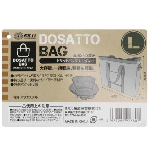 ドサットバッグ L グレー SDB2-600GR メーカー直送 ▼返品・キャンセル不可【他商品との同時購入不可】