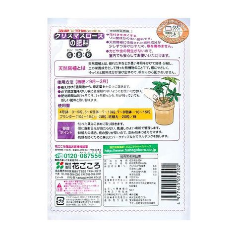 花付きを良くするリン酸を多く配合。ゆっくり長く効く。
