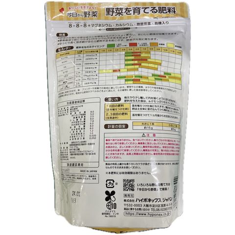 ・野菜の生育に必要な成分と有機成分をバランスよく配合し、おいしい野菜が収穫できます