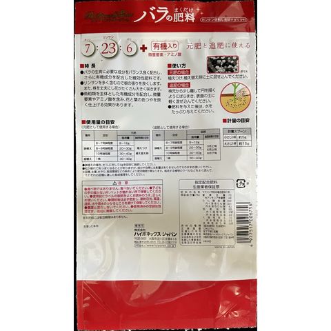 バラの生育に必要な成分をバランスよく配合し、更に有機成分を配合した緩効性肥料です