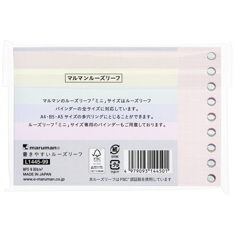 片手サイズの小さなルーズリーフ『ルーズリーフミニ』。 普段お使いのバインダーにも、専用のミニバインダーにもとじられます。