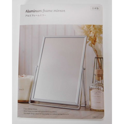 鏡 ミラー 卓上鏡 スタンドミラー アルミフレーム 化粧鏡 メイク 角型 シルバー 日本製