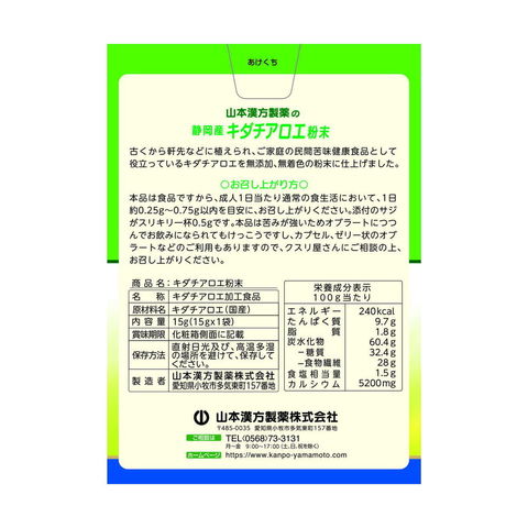 ◆山本漢方 キダチアロエ粉末 15g