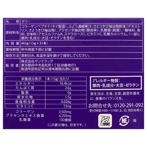◆コラーゲン&プラセンタWith乳酸菌ゼリー 15gx31本