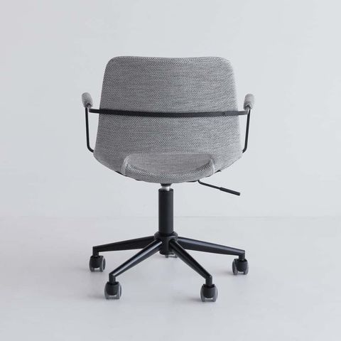 さらに、緩やかなカーブを描く肘置きは、座った際の休息だけでなく、椅子を引き出したり移動させたりする際の「取っ手」としても活用できる便利な設計となっております。