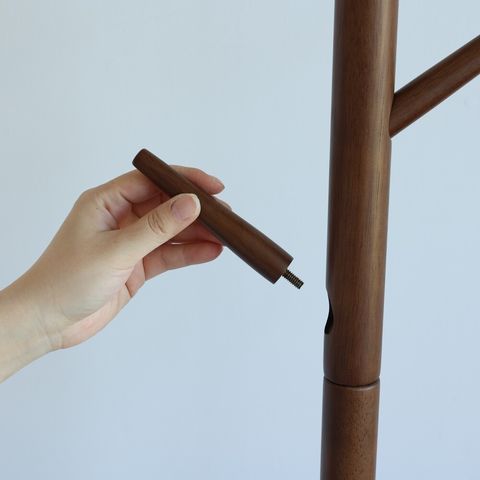一番下のフックの高さは102cmなので幼少期の子どもでも自分で掛けられます。子どもから大人まで使うことができるデザイン。