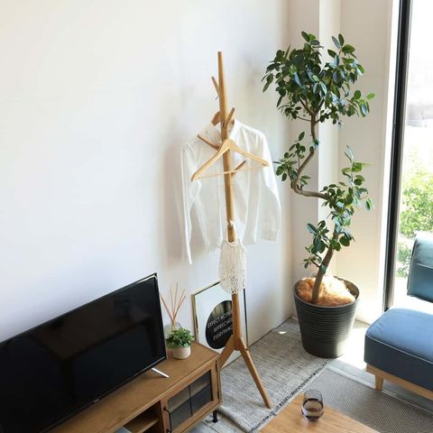 一番下のフックの高さは103cmなので幼少期の子どもでも自分で掛けられます。子どもから大人まで使うことができるデザイン。