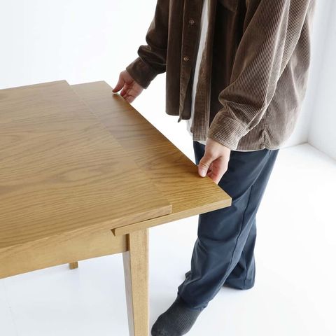 拡張用天板の裏には指を掛けやすい取っ手用の溝が付いているため、女性おひとりでもスムーズに、かつ安全に作業ができる優しい設計です。