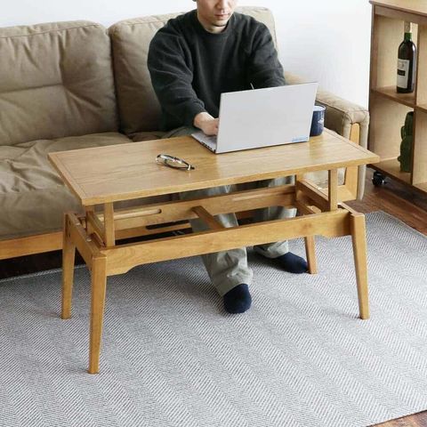 高さ55cmに上げれば、ソファに座った状態でのPC作業や食事がスムーズに行える、使い勝手の良いセンターテーブルへと早変わりします。