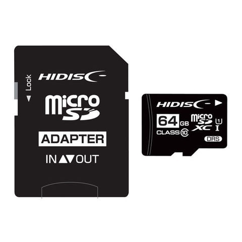 HIDISC microSDHCカード 64GB データ復旧サービス付 CLASS10 UHS-1対応 SD変換アダプタ/ケース付き 1セット