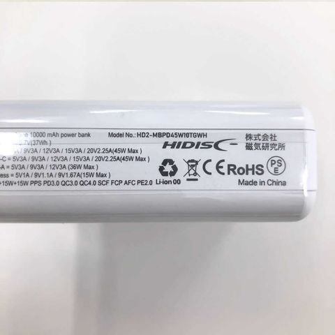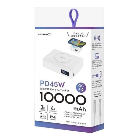 HIDISC 卵サイズでPCも充電可能 10000mAh PD45W対応 モバイルバッテリー ホワイト