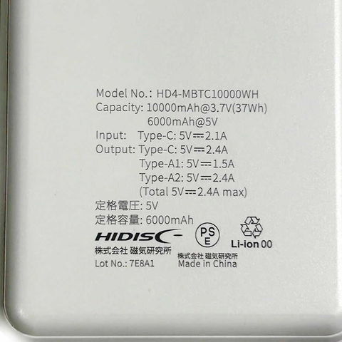 HIDISC 小型軽量世界最小クラス 高性能ICチップ搭載 10000mAh モバイルバッテリー ホワイト