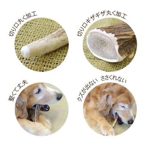 商品説明・ヨーロッパの大地で育ったアカシカの角を、日本で研磨・加熱処理などの加工を行い、犬用のおもちゃにしました。独特の香り、噛み応え抜群の鹿角です。
