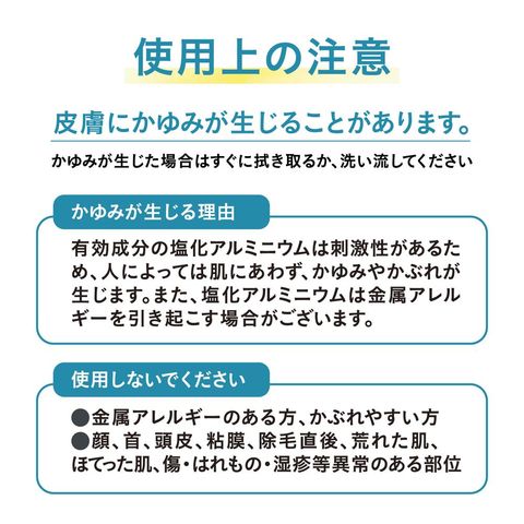 制汗剤、制汗、塩化アルミニウム、塩化AL、多汗症、薬用制汗剤、わきが、ワキ汗、ニオイ、汗、無香料、日本製