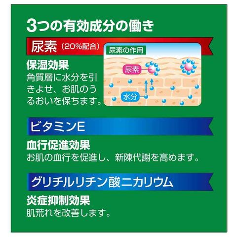 ●近江兄弟社メンタームクリームU20は、尿素を20%配合し体内にある水分を取り込んで角質層の水分を保持します。
