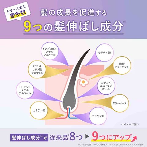 ●髪の成長を促進するシリーズ史上最多数、9つの髪伸ばし成分※1配合。