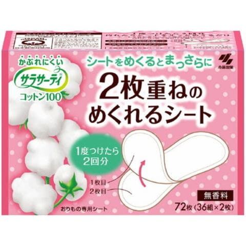 サラサーティ 2枚重ねのめくれるシート 無香料 72枚