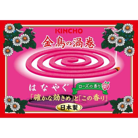 ●はなやぐローズの香りのかとりせんこう(MOSQUITO COILS) ●煙の刺激が少ない(当社比)。 ●天然ローズオイル配合。 ●線香立て(スチール製)2個入。 ●日本製。 【特長】 1.はなやぐローズの香りが漂い、やさしい使い心地で煙刺激を低減します(当社比)。 2.優美な薄紅色で、落ち着いた色合いです。 3.安定した効果を発揮し、約7時間有効です。※環境により燃焼時間は変化します。 4.蚊成虫の殺虫効果だけでなく、屋外における忌避効果、屋内への侵入阻止効果を発揮します。