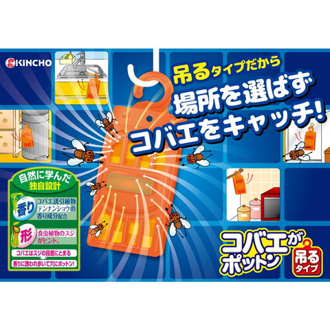 コバエ誘引植物「テンナンショウ」の香り成分を配合した強力誘引ゲルと、食虫植物のスジをヒントにした容器の形状でコバエを誘い込む、吊るタイプのコバエ捕獲器。