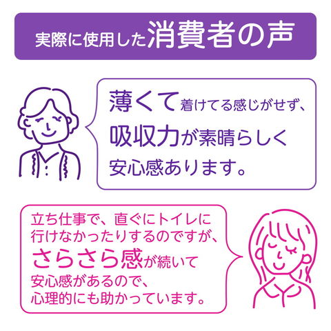 1枚をさらに薄くしたシートを、尿モレが起こる中心部分に重ねて2層にすることで、必要な部分の吸水力を大幅アップしながら、その前後はさらに薄くなることで、着け心地の良さも大幅アップしました。
