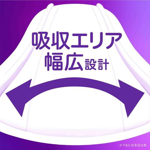 ●模様のある中心部分の超吸収ゾーンは、吸収シート2枚重ねになっており、うすいのに、モレ・ぬれ感・においを防ぐ。