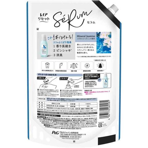 P&G、P&Gジャパン、P&Gジャパン合同会社、ピーアンドジー、レノア、リセットセラム、柔軟剤、ソフナー、香りづけ、洗濯、洗濯洗剤、詰替、詰替え、つめかえ、レフィル、ミネラルジャスミン、ジャスミン、ミネラル、香り