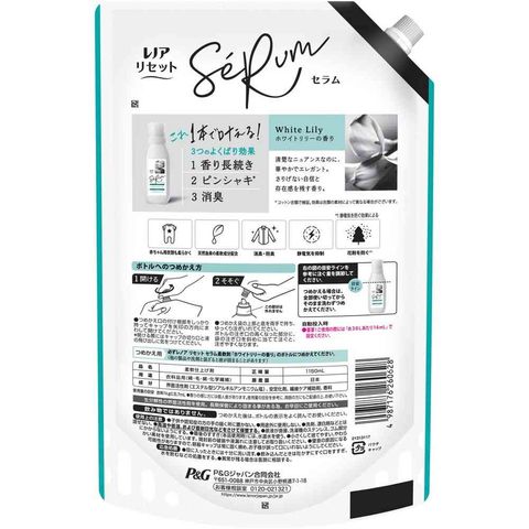P&G、P&Gジャパン、P&Gジャパン合同会社、ピーアンドジー、レノア、リセットセラム、柔軟剤、ソフナー、香りづけ、洗濯、洗濯洗剤、詰替、詰替え、つめかえ、レフィル、ホワイトリリー、ホワイト、リリー、香り、大容量、特大