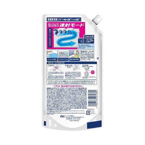 P&G、P&Gジャパン、P&Gジャパン合同会社、ピーアンドジー、ファブリーズ、お部屋用、衣類、コート、制服、ソファ、カーペット、家具、布用、除菌、消臭、防臭、抗菌、脱臭、芳香剤、スプレー、ミスト、速乾、ジェットスプレー、詰替、詰替え、詰め替え、レフィル、入替、中身、大容量