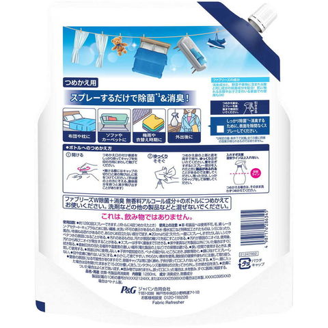 P&G ファブリーズ W除菌+消臭スプレー 衣類・布製品用 無香料 アルコール成分配合 詰替 4回分 1280ml