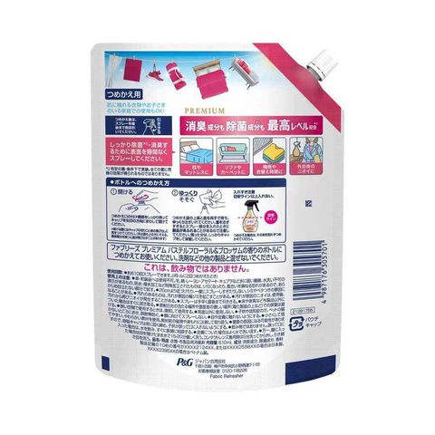 P&G、P&Gジャパン、P&Gジャパン合同会社、ピーアンドジー、ファブリーズ、お部屋用、衣類、コート、制服、ソファ、カーペット、家具、布用、除菌、消臭、防臭、抗菌、脱臭、芳香剤、スプレー、ミスト、スプレー、プレミアム、詰替、詰替え、詰め替え、レフィル、入替、中身