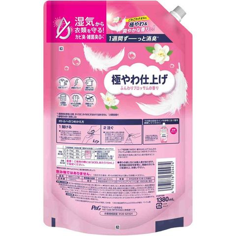 P&G、P&Gジャパン、P&Gジャパン合同会社、ピーアンドジー、レノア、超消臭、極やわ仕上げ、ふんわり、柔軟剤、ソフナー、香りづけ、洗濯、洗濯洗剤、詰替、詰替え、つめかえ、レフィル、ブロッサム、特大、大容量、超特大