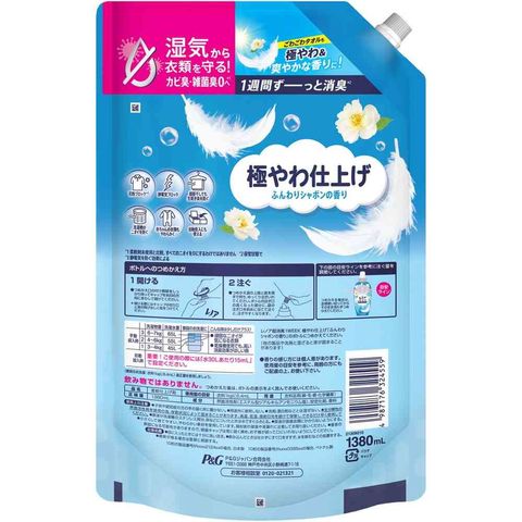 P&G、P&Gジャパン、P&Gジャパン合同会社、ピーアンドジー、レノア、超消臭、極やわ仕上げ、ふんわり、柔軟剤、ソフナー、香りづけ、洗濯、洗濯洗剤、詰替、詰替え、つめかえ、レフィル、シャボン、特大、大容量、超特大