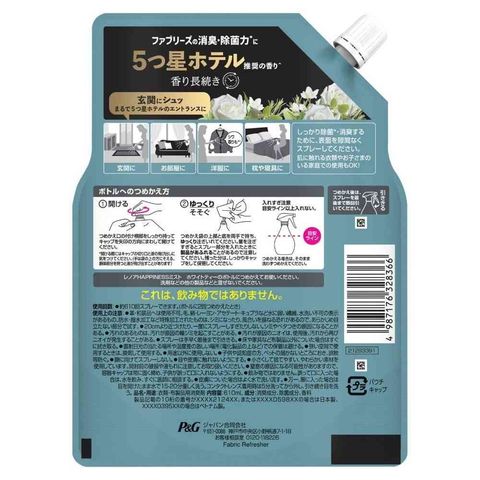 P&G、P&Gジャパン、P&Gジャパン合同会社、ピーアンドジー、レノア、ハピネス、ミスト、フレグランス、消臭、芳香、衣類、コート、スーツ、洗濯できない、ホワイトティー、詰め替え、つめかえ、詰替え、レフィル