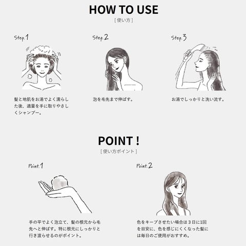 ブリーチ後やヘアカラーをした髪にバランスの取れたオレンジをプラスカラーシャンプー ターゲット、対象毛:デザインカラーやカラー前後の色味補正が必要な方(※白髪には染まりません)。 ●ソマルカでメインに使用している塩基性染料は、ダメージを帯びた髪には染まりやすいが、爪には染まりにくい特性を持っているので、髪はしっかりと染まるが爪には染まりにくい。 ●ヘアケアとしての基本性能も高く、アミノ酸系と両性の洗浄成分をバランス良く配合することで、泡立ちと泡持ちの良さを実現している。 ●幅広い活用方法。ソマルカのピンクやアッシュにミックスすることで、サロンワークの色表現が広がる(推奨ミックス比率はオレンジを20%)。 ハイトーン毛だけでなく、?中明度領域でもオレンジの彩度を感じられ、幅広いお客様におすすめできる色調。 カラー前後の色味補正などへの活用も可能な上、塗布量のコントロールによって高発色・高彩度のデザインカラーの表現も可能。