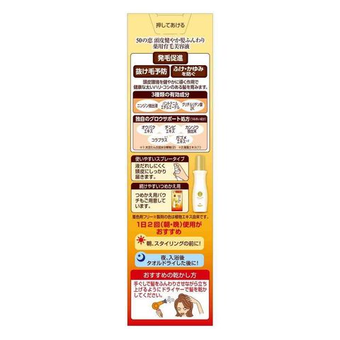 育毛効果パワーアップ!3種類の有効成分+独自のグロウサポート処方を搭載。ヘアサイクルの全てに働きかけ、太く強い毛を育てる。