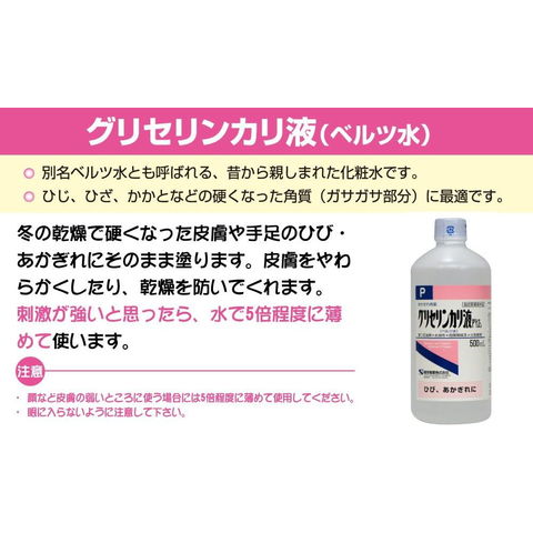 ●別名ベルツ水とも呼ばれ、肌のひび、あかぎれ等の改善に役立つお肌の軟化剤です。