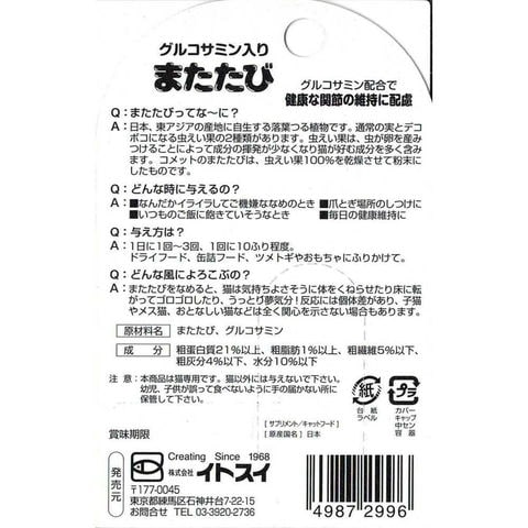 健康維持に効果的なまたたび粉末と、関節に配慮したグルコサミンを配合。
