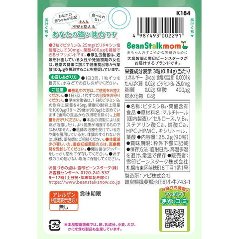 ◆雪印 ビーンスタークマム つわびー 25.2g(90粒)