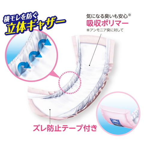 ◎ズレ防止テープでおむつにしっかり固定ですます。