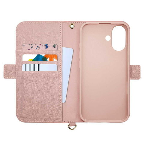 テレホンリース iPhone16 ストラップ付手帳型 ライトピンク 8090IP461BHSLPK