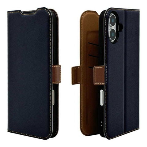 テレホンリース iPhone16Plus 手帳型ケース 薄型 ネイビー×ブラウン