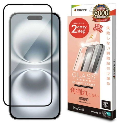 iPhone16、iPhone15、ガラスフィルム、ガラスフィルム、全面保護、高光沢、高透明、クリア、角割れしない、0.25mm、硬度10H、レボリューションガラス、貼付革命、瞬間貼り、アイフォン、保護フィルム、MTK4527IP461