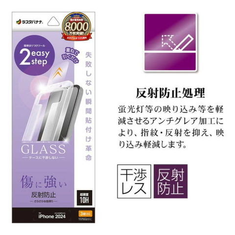 iPhone16Pro、ガラスフィルム、Pro、平面保護、アンチグレア、反射防止、傷に強い、干渉しない、干渉レス、0.33mm、硬度10H、レボリューションガラス、貼付革命、瞬間貼り、アイフォン、保護フィルム、MTK4533IP461P