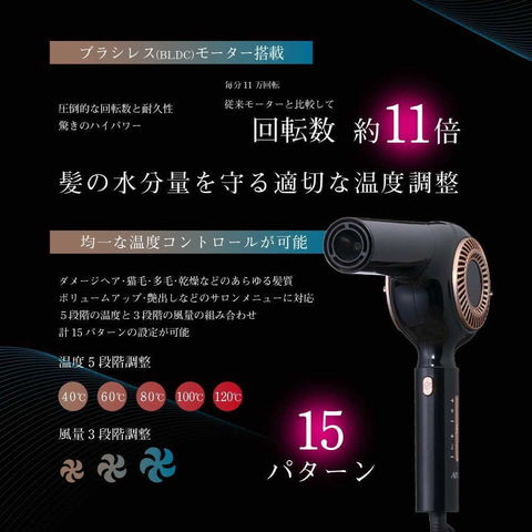 トリコインダストリーズ アイビル ブラシレスモーター ドライヤー 黒 BD-23D08 1台
