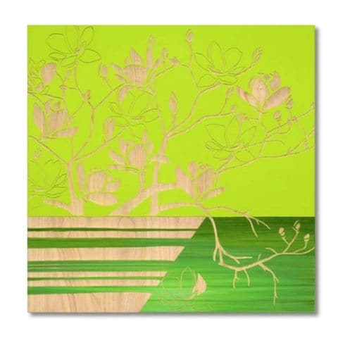 商品説明様々な木目が現れネーチャーなモダンアート 天然の木にペイントを施し、熟練した職人がリーフや花、木等の柄を様々なサイズの彫刻刀を使って、1枚1枚彫っています。