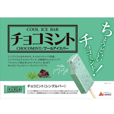 ミントアイスの爽快さと、チョコチップのパリパリ食感が手軽に楽しめるアイスバー。