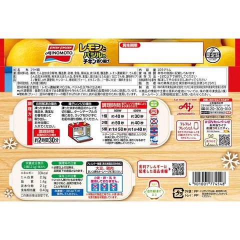 冷凍から揚げ、レモンとバジル、チキン香り揚げ、鶏肉おかず、味の素、九州産鶏肉、電子レンジ調理、自然解凍、お弁当おかず、冷凍食品、レモン風味、バジル風味、手軽調理、ヘルシー鶏唐揚げ、人気惣菜